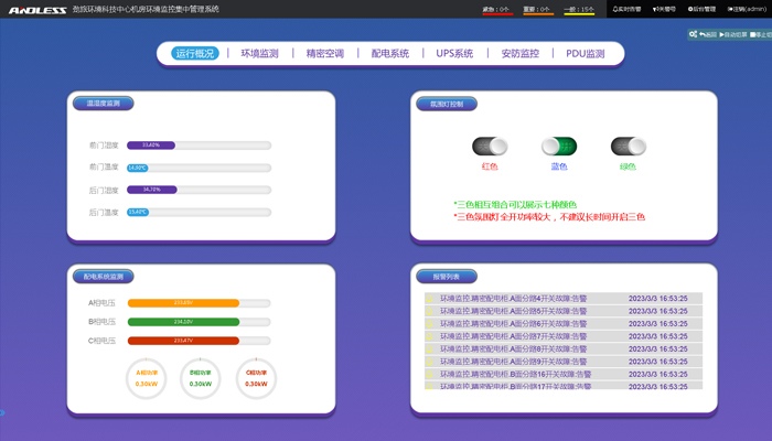 機房動力環境集中監控管理系統,主要是對數據中心機房及其他動力環境的動力設備、環境及現場圖像實行監控,包含集中監控上層軟件,采集硬件以及傳感配套產品,通過遠程傳輸,對數據中心機房等相關站點的UPS、蓄電池、精密空調等多種設備以及溫度、濕度、消防、滅火等環境參量以及現場圖像集中進行實時檢測,能夠及時判斷故障并產生告警,對遠端設備進行遙控和調節,從而實現機房服務器,網絡設備、通信設備提供穩定、安全的運行環境。采用這種現代化的監控系統,其根本目的是為了提高設備的維護和管理質量,降低設備維護成本,提高整體工作效率,從而建立起一套高可靠性、高效率的維護體制。適用于金融、政 府、電信行業、企業等大型、中小型數據中心。