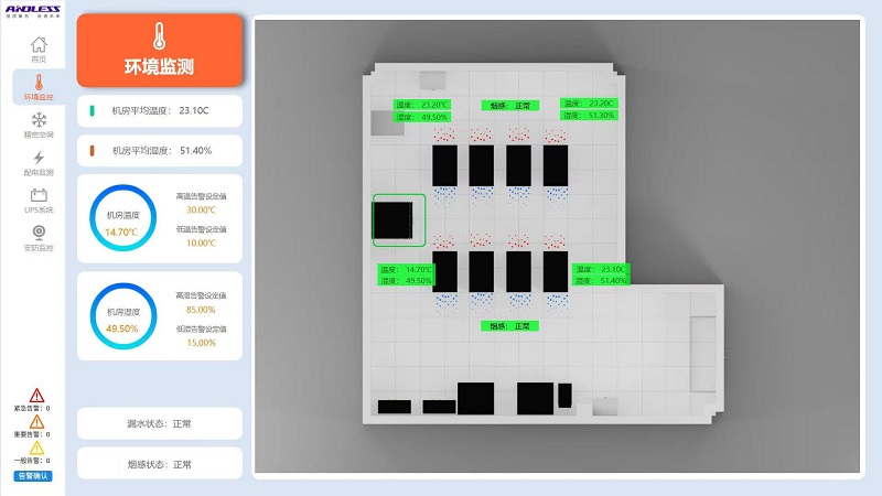 本次為開沃汽車(淮南)有限公司園區(qū)機(jī)房配備并安裝調(diào)試安德力士品牌UPS、精密空調(diào)、動(dòng)力環(huán)境集中監(jiān)控系統(tǒng)等設(shè)備,現(xiàn)已安裝、調(diào)試、培訓(xùn)完成。本次的本次動(dòng)力環(huán)境監(jiān)控系統(tǒng)主要是對(duì)機(jī)房內(nèi)配電、UPS主機(jī)、電池、精密空調(diào)、環(huán)境等設(shè)備進(jìn)行集中監(jiān)控管理,該系統(tǒng)可廣泛應(yīng)用于監(jiān)控機(jī)房、通信機(jī)房、隧道風(fēng)機(jī)房、變電站及配電室等場(chǎng)所。本動(dòng)環(huán)系統(tǒng)軟件可實(shí)現(xiàn)中文圖形化人機(jī)界面的操作,界面更友好,功能強(qiáng)大,可實(shí)現(xiàn)對(duì)機(jī)房內(nèi)設(shè)備的全參數(shù)、全方位的監(jiān)控,大大提高了用戶的維護(hù)管理效率,降低了維護(hù)成本。
