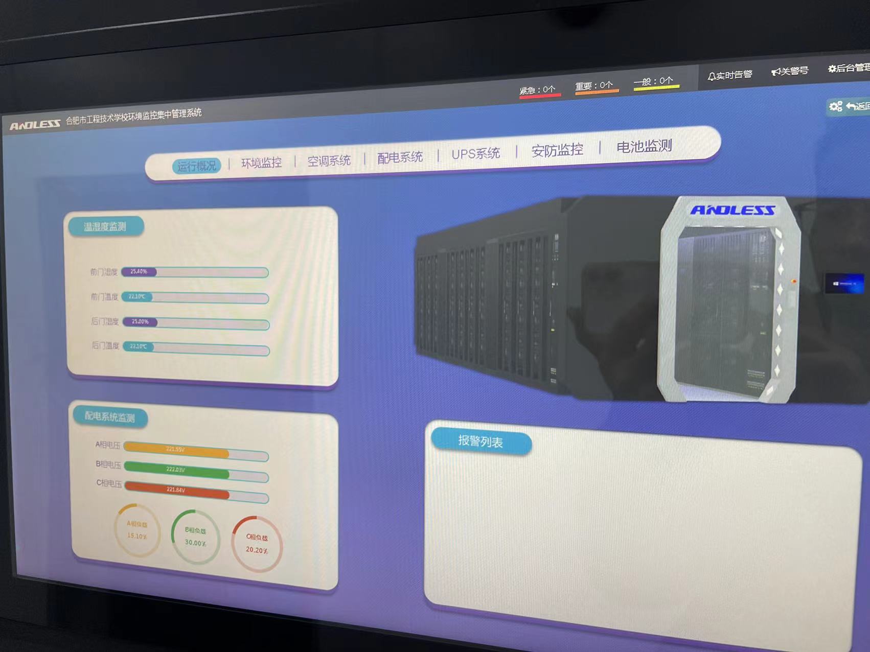 近期我司為合肥市工程技術(shù)學(xué)校提供了一套安德力士品牌環(huán)境監(jiān)控集中系統(tǒng)設(shè)備,現(xiàn)已完成安裝調(diào)試。