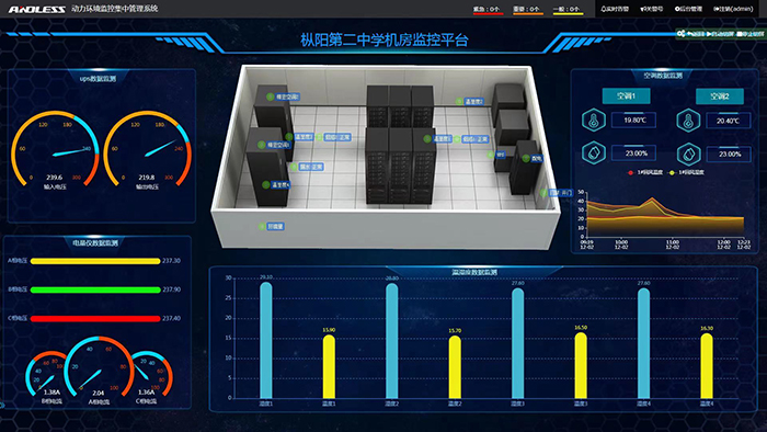 近期安慶市樅陽二中向我司采購安德力士品牌的高頻式30KVA、40KVA UPS不間斷電源,GLK261精密空調(diào)等若干,此次樅陽二中機(jī)房還安裝了一套動環(huán)監(jiān)控系統(tǒng),通過機(jī)房的監(jiān)控平臺,可以對各個系統(tǒng)設(shè)備的運行狀態(tài)及工作參數(shù)進(jìn)行監(jiān)視(例如:精密空調(diào)、UPS、煙感等)。