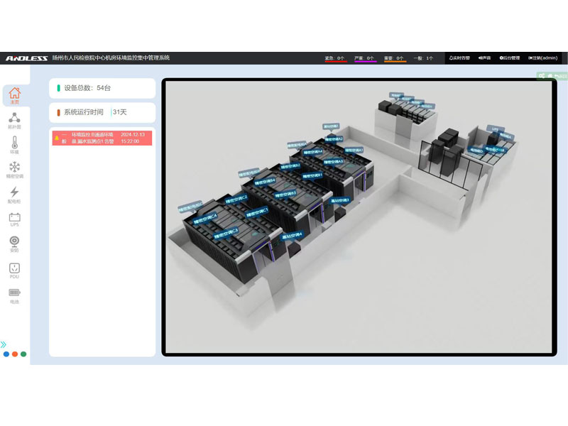 應用范圍:通過3D可視化技術實現資產管理優化,如導航、導覽、街景等,3D技術的應用為人們提供了更加便捷的生活模式。3D可視化系統是對整體建筑、樓層、房間、設備等場景進行三維建模,并與監控、報警數據及其他輔助管理相結合,為各管理要素提供統一的仿真管理平臺,從而實現在3D場景中實時動態呈現各管理要素的主要指標及告警信息,使用戶實現所看即所得的可視化管理模式。該新穎的管理手段,可以大幅度提升數據中心機房的管理水平和效率,塑造全新機房監控的形象功能特點:通過3D可視化系統,用戶可在WEB端獲得與實際場景相一致的三維模型,實現監控可視化。用戶的所有操作通過點擊設備實物幾顆呈現出與設備相對應的實時運行參數,實現所見即所得的仿真操作模式,帶給用戶逼真、形象的效果體驗。當設備發生報警時,系統自動將視角聚焦到該報警的位置,相應的設備變紅閃爍,之后該報警自動加入報警隊列,便于管理人員快速了解情況,并及時處理。可展示監控設備的資產屬性,包括資源基本信息、管理信息、來源信息、屬性信息、狀態信息、運維信息等,并可在線編輯,系統還可根據用戶預設的巡檢日期進行自動提示。用戶可任意指定巡視路線,設定巡視周期,動態展示巡視區域的設備狀態。