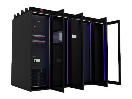 ● 一體化智能設計,尺寸600*1400*2000mm,安裝寬度 19 英寸,安裝高度 42U,優質冷軋鋼板,集成機柜、制冷、配電、監控等系統